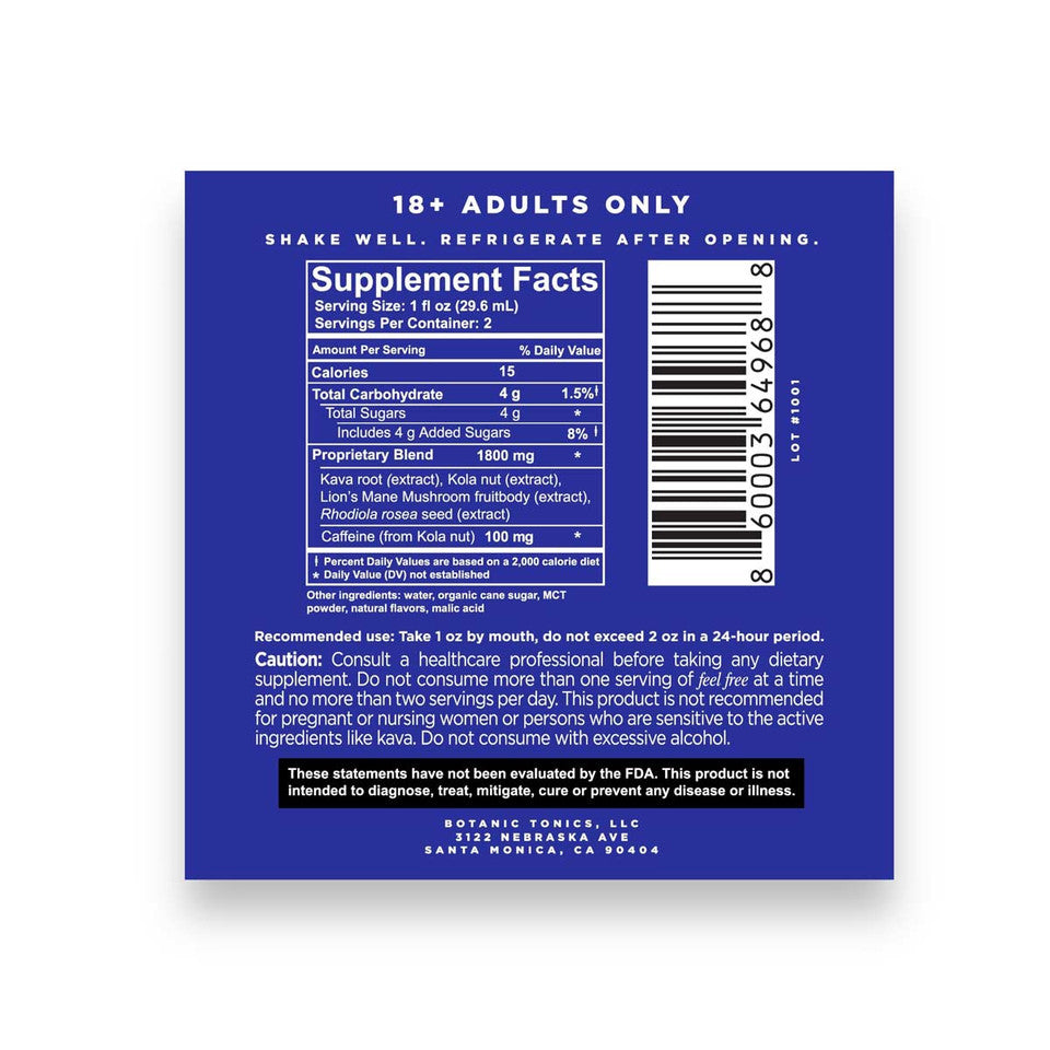 Discover the calming power of Feel Free Classic Kava, a meticulously crafted 2oz tonic infused with premium kava root for a naturally soothing experience. Designed to promote relaxation and well-being, this elixir blends traditional botanical wisdom with modern convenience.